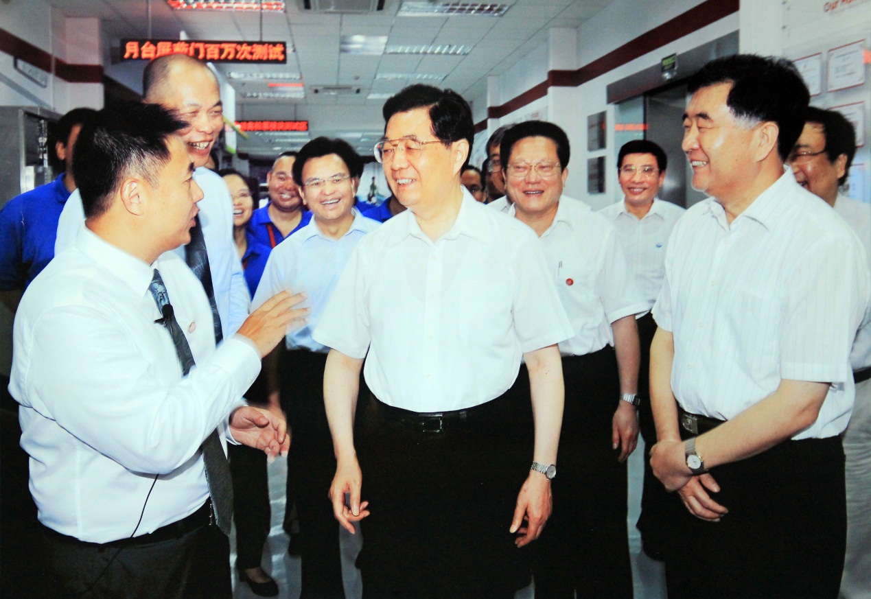 2011年8月14日,中共中央总书记、国家主席、中央军委主席胡锦涛在中共中央政治局委员、广东省委书记汪洋等陪同下,专程来到佳都科技,进行了近一个小时的参观视察,总书记深入考察了佳都科技自主科技创新、转型发展的情况,就民营企业的自主创新、产业升级做出重要指示,并勉励佳都科技做大做强,成为世界一流企业。