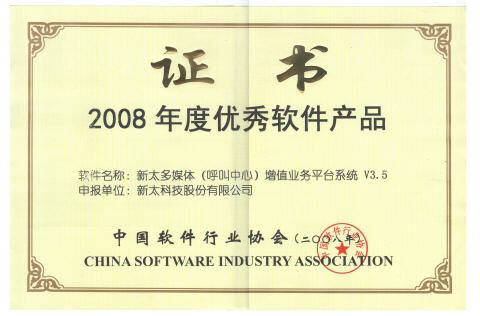 新太科技呼叫中心产品获“2008年度优秀软件产品”称号