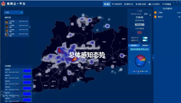 在此背景下,佳都科技推出了面向公安实战应用的立体化防控作战整体解决方案——“视频云+”。通过海量视频结构化处理、智能分析处理、人脸识别比对等服务能力,实现基于视频的人员、车辆、手机、证件、门禁、停车场等信息的布控、预警,通过系统与终端的联动,实现巡逻路线的制定,作战实时指挥,路面实时巡控。结合四标四实(四标:标准作业一张图、标准地址、标准房屋编码、标准网格,四实:实有人口、实有房屋、实有单位、实有城市部件)数据,实现社区网格的重点区域、重点场所、重点部位,重点行业的危爆物品、特殊人群、乡镇、街道、社区的重点防控。实现多给数据的防控保障。目前视频云+平台已经在广州、珠海、深圳、佛山、汕尾、梅州等试点地区落地应用。