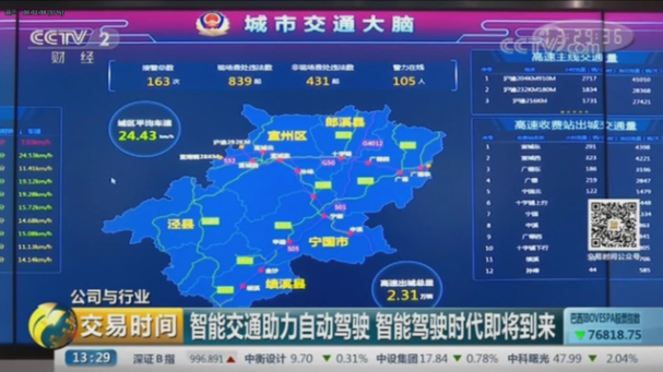 8月17日,CCTV2对佳都科技城市交通大脑进行了报道。城市交通大脑不仅缓解交通拥堵,在半自动驾驶和自动驾驶的混行时代,城市交通大脑将实现人车路系统的协同,助力自动驾驶,营造出一个更加安全智慧的出行环境。